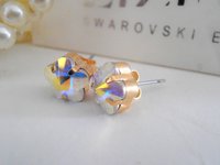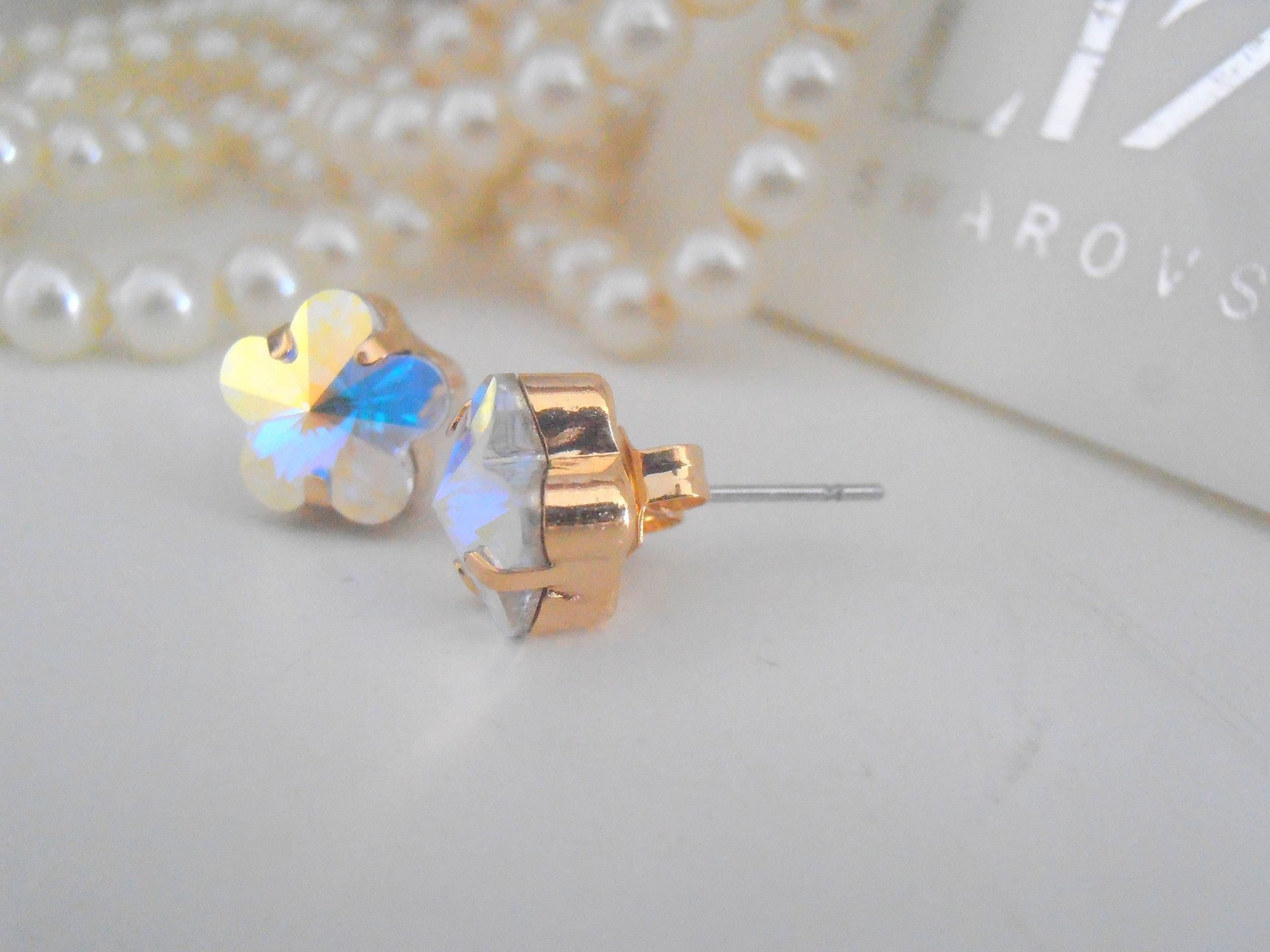 Aurora Borealis Flower Crystal Earrings. Minimalist Post Earrings for Everyday wearing.