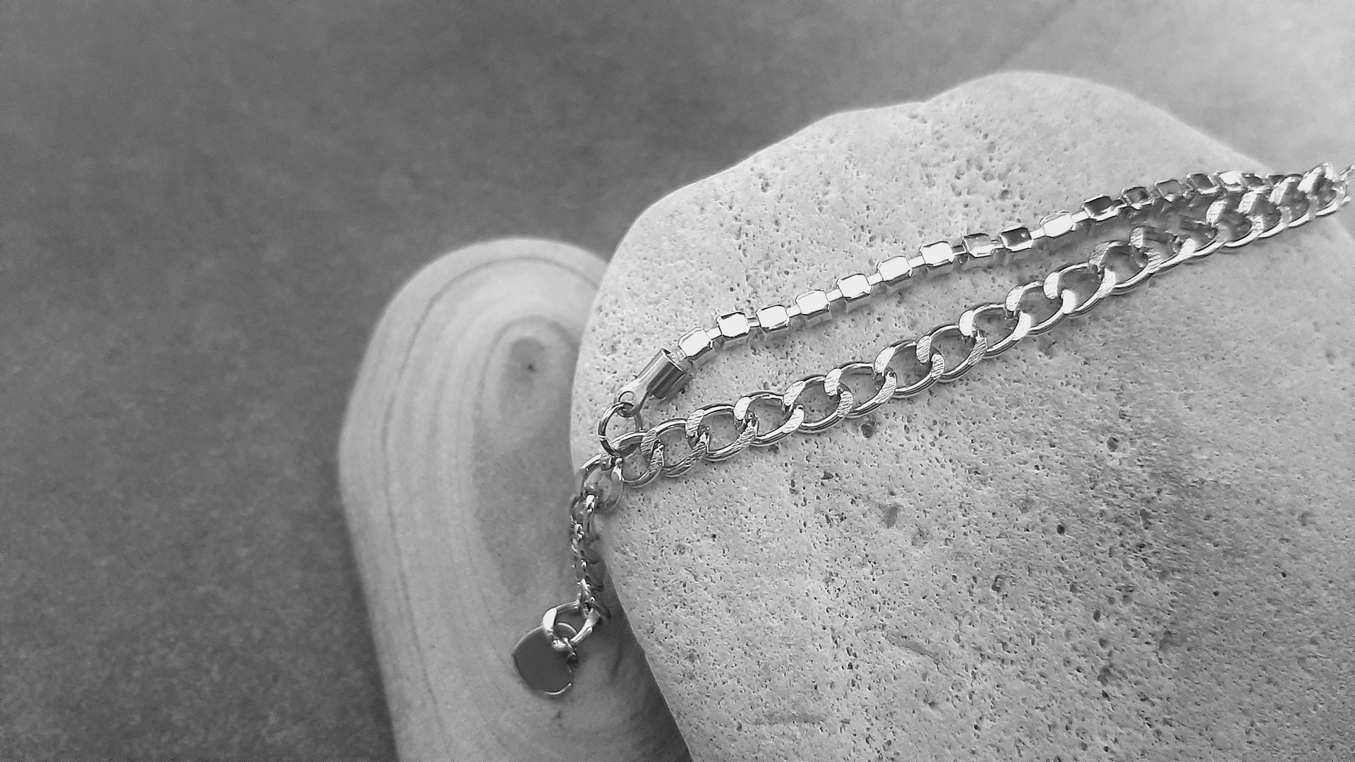Double Row Chain Bracelet with Rhinestones | Stainless Steel Crystal Bracelet