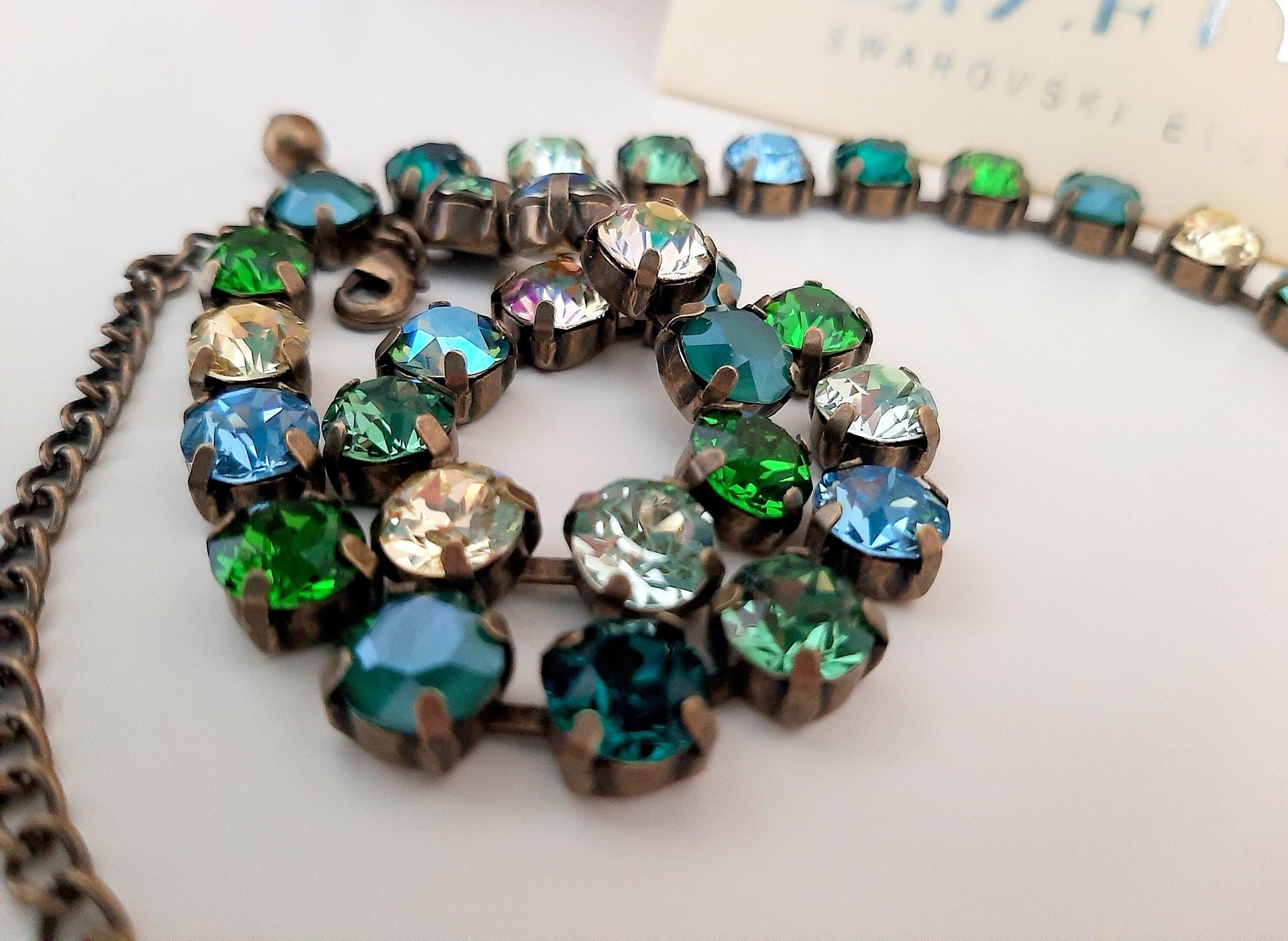 Green Blue Multi colors Bronze Tennis Choker, Sweet 16 Birthday Gift, Crystal Necklace, Antique Jewelry