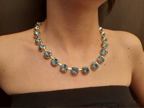 Handmade Colorful Rhinestone Necklace in Silver Plating.