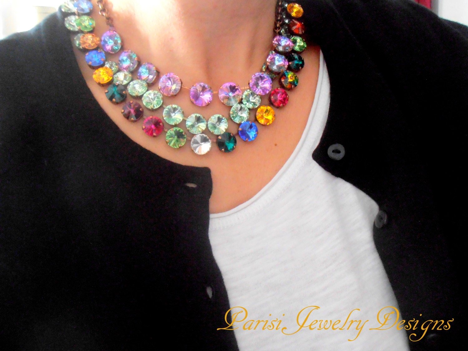 3. Multi-colors "Braziliero" 12mm Rivoli Necklace - 25 Crystals (Full Necklace).
