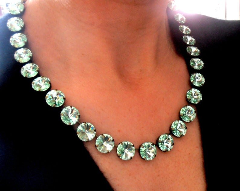 2. Chrysolite Rivoli Necklace 12mm - 25 Crystals (Full Necklace).