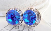 Color: Sapphire Blue Crystals with mini Clear Rhinestones around the metal setting..