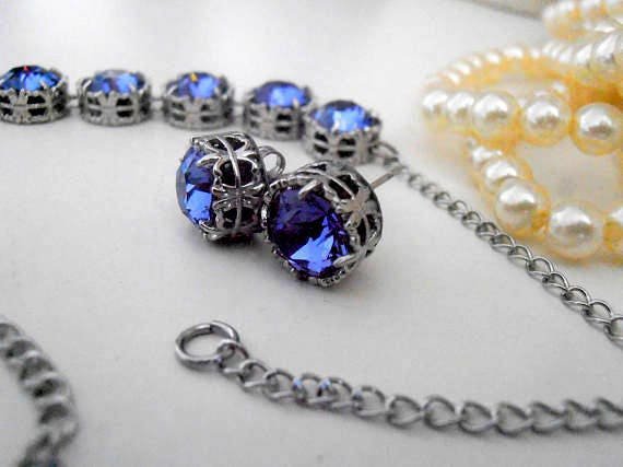 Handmade Tanzanite Filigree Choker Necklace/Bracelet/Stud Pierced Earrings.